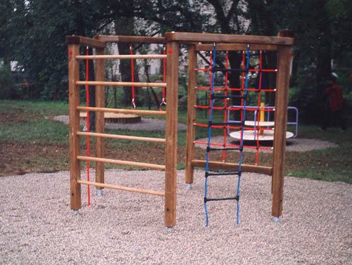 Kletternetze bestehen aus Herkulesseilen mit Stahldrahteinlagen mit feuerverzinkten Anschlüssen. Die Seile sind UV-beständig und mit PP-Leinen umwickelt. Die Seilverbindungen sind mit patentierten PP-Elementen hergestellt und vandalensicher.