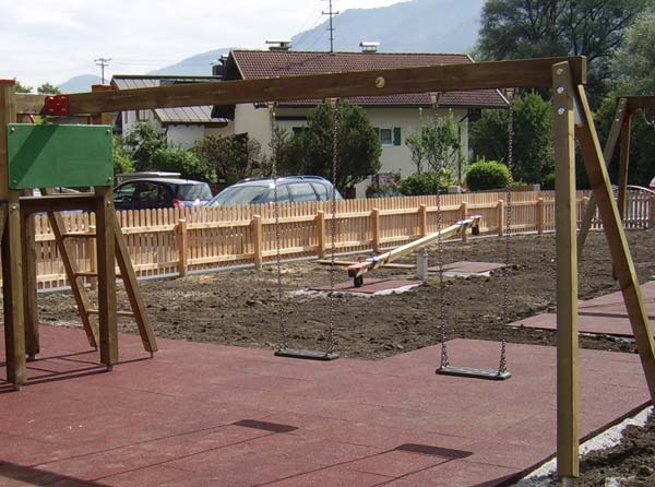 Als Fallschutz sind lose Materialien wie Rindenmulch, Hackgut, Sand oder Rundkorn zulässig. Daneben gibt es synthetische Bodenbeläge in Form von Fallschutzplatten oder Direkteinbau mit EPDM-Belag.