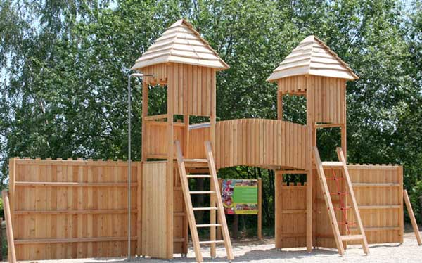Unsere Kieferleimbinder sind kesseldruckimprägniert und durch eine umweltfreundliche Lasur gegen Feuchte geschützt. Kiefer Imprägniert stellt die kostengünstigste Variante unserer Spielgeräte dar und zeichnet sich durch die schöne tannengrüne Farbe der Holzelemente aus.