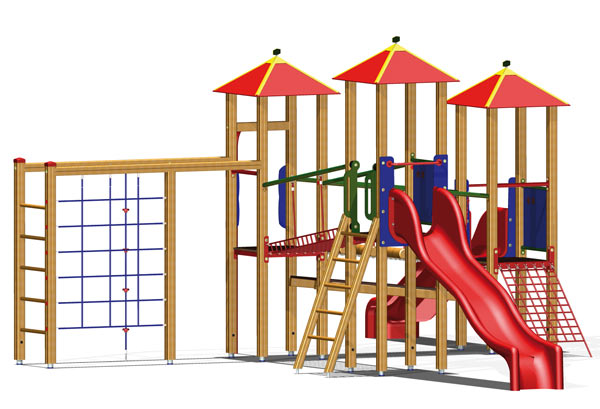 - 1 Kletteranbau mit Leiter, Kletternetz und Seil