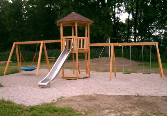 Unsere Kieferleimbinder sind kesseldruckimprägniert und durch eine umweltfreundliche Lasur gegen Feuchte geschützt. Kiefer Imprägniert stellt die kostengünstigste Variante unserer Spielgeräte dar und zeichnet sich durch die schöne tannengrüne Farbe der Holzelemente aus.