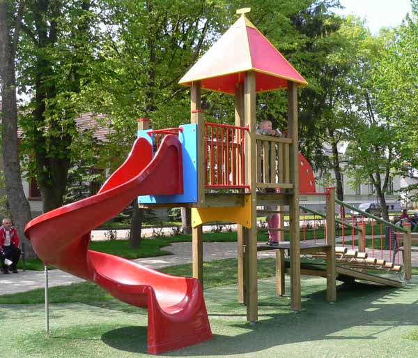 - 1 Rutschenturm mit Balkon und Pyramidendach,