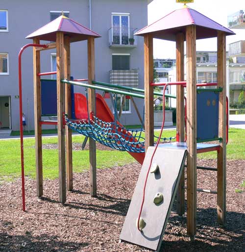 Unsere Kieferleimbinder sind kesseldruckimprägniert und durch eine umweltfreundliche Lasur gegen Feuchte geschützt. Kiefer Imprägniert stellt die kostengünstigste Variante unserer Spielgeräte dar und zeichnet sich durch die schöne tannengrüne Farbe der Holzelemente aus.
