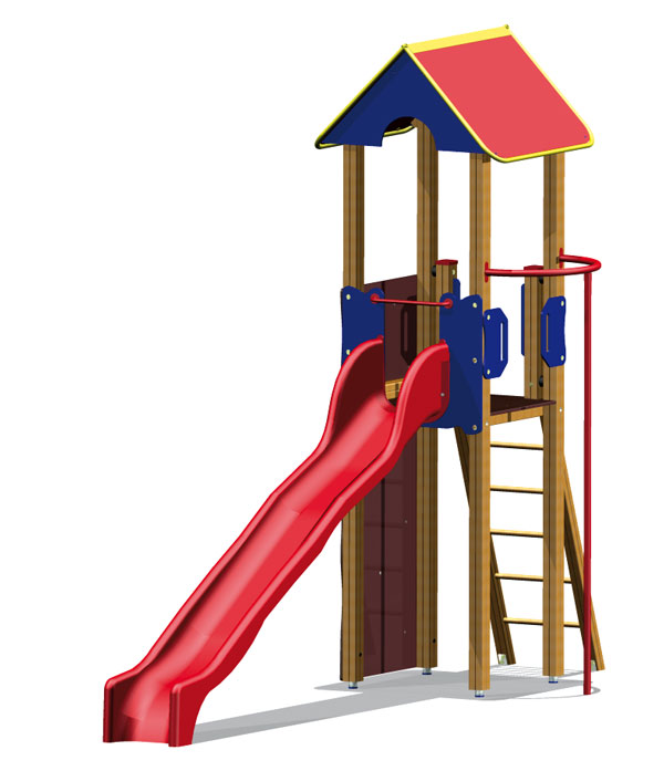 - 1 Rutschenturm mit Satteldach, PH 195 cm