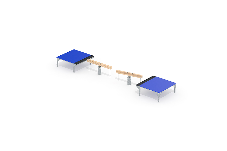 rutschfesten Siebdruckplatten fĂŒr sicheren Stand - 2 Kippbalken mit wartungsfreier Lagerung