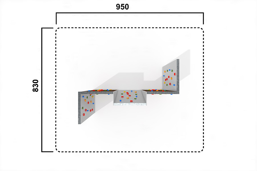 geneigt (Überhang/Schrägaufstieg) - 2 Kletterwände (die beiden ausseren)