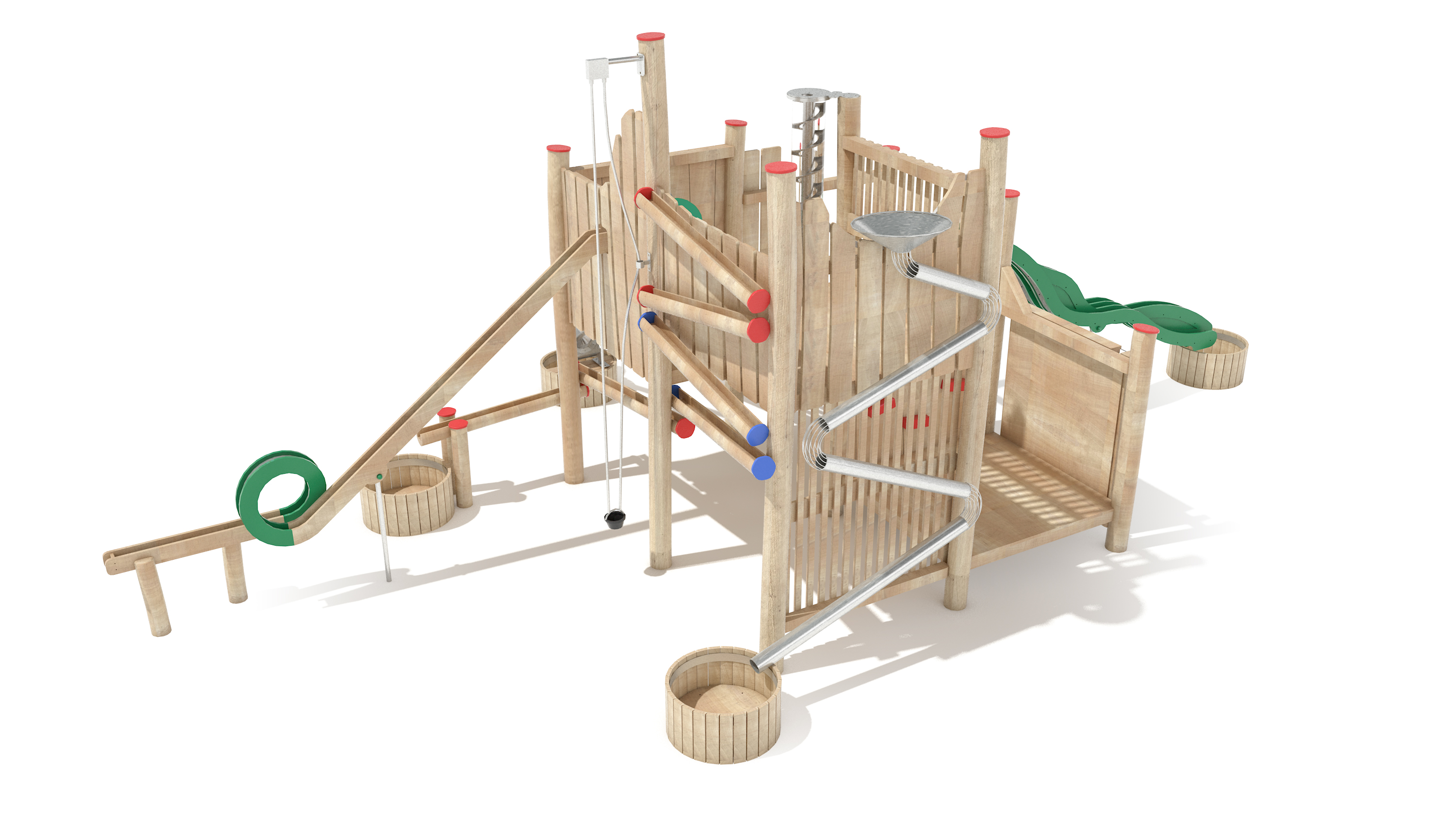 Kletternetze bestehen aus Herkulesseilen mit Stahldrahteinlagen mit feuerverzinkten Anschlüssen. Die Seile sind UV-beständig und mit PP-Leinen umwickelt. Die Seilverbindungen sind mit patentierten PP-Elementen hergestellt und vandalensicher.