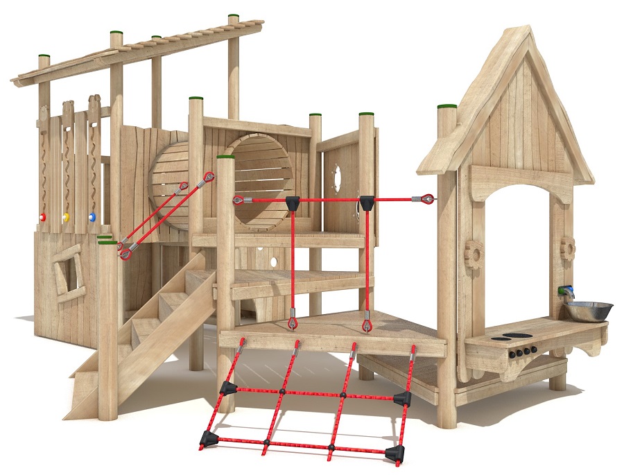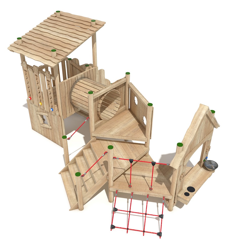Kletternetze bestehen aus Herkulesseilen mit Stahldrahteinlagen mit feuerverzinkten Anschlüssen. Die Seile sind UV-beständig und mit PP-Leinen umwickelt. Die Seilverbindungen sind mit patentierten PP-Elementen hergestellt und vandalensicher.