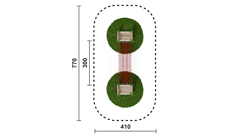 Kletternetze bestehen aus Herkulesseilen mit Stahldrahteinlagen mit feuerverzinkten Anschlüssen. Die Seile sind UV-beständig und mit PP-Leinen umwickelt. Die Seilverbindungen sind mit patentierten PP-Elementen hergestellt und vandalensicher.