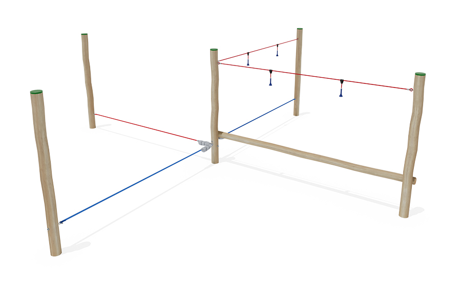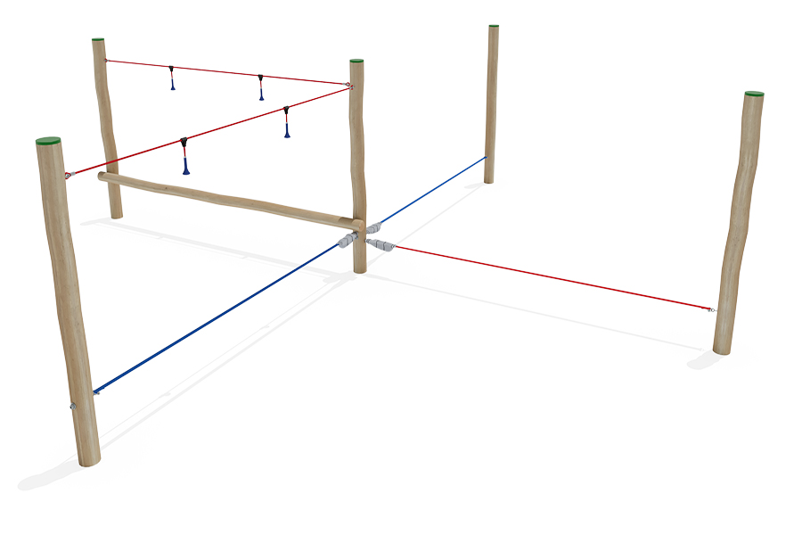 Kletternetze bestehen aus Herkulesseilen mit Stahldrahteinlagen mit feuerverzinkten Anschlüssen. Die Seile sind UV-beständig und mit PP-Leinen umwickelt. Die Seilverbindungen sind mit patentierten PP-Elementen hergestellt und vandalensicher.