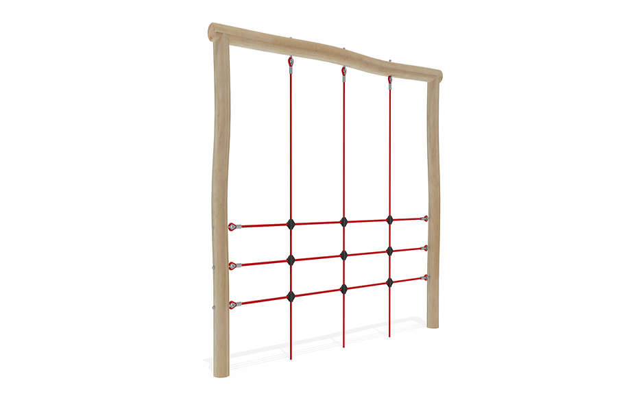 Kletternetze bestehen aus Herkulesseilen mit Stahldrahteinlagen mit feuerverzinkten Anschlüssen. Die Seile sind UV-beständig und mit PP-Leinen umwickelt. Die Seilverbindungen sind mit patentierten PP-Elementen hergestellt und vandalensicher.