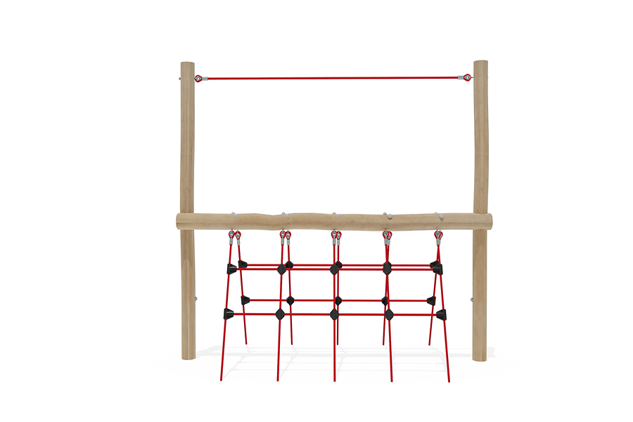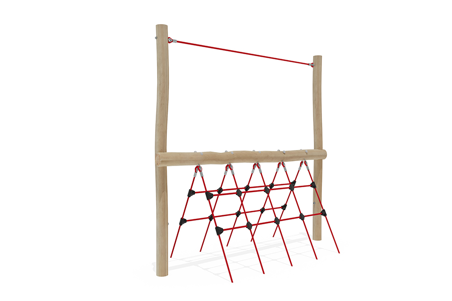 Kletternetze bestehen aus Herkulesseilen mit Stahldrahteinlagen mit feuerverzinkten Anschlüssen. Die Seile sind UV-beständig und mit PP-Leinen umwickelt. Die Seilverbindungen sind mit patentierten PP-Elementen hergestellt und vandalensicher.