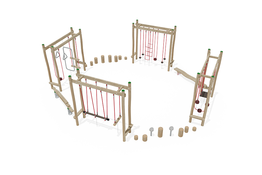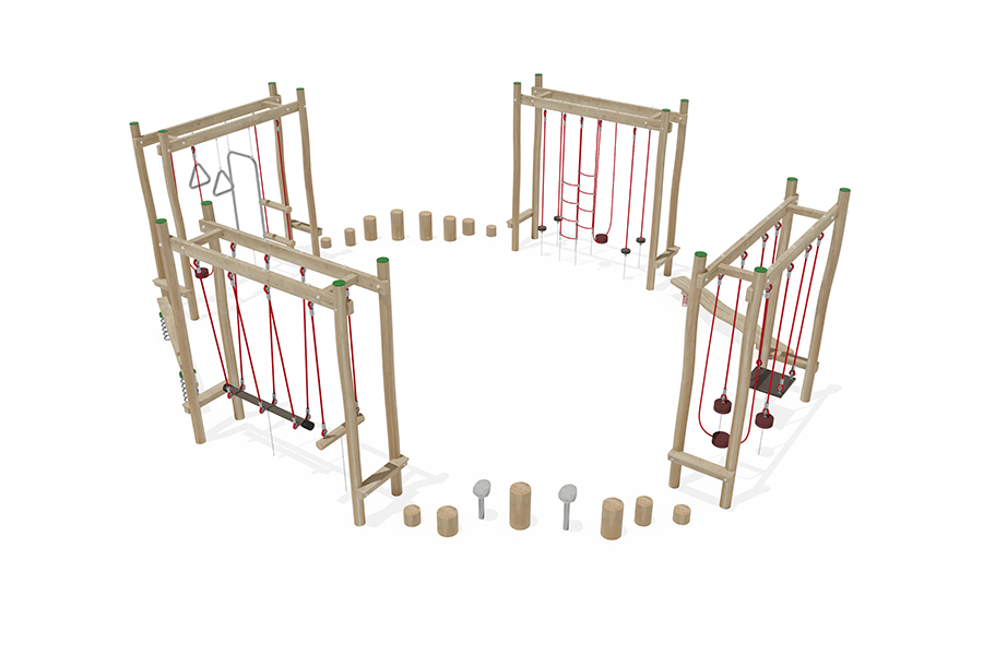 Kletternetze bestehen aus Herkulesseilen mit Stahldrahteinlagen mit feuerverzinkten Anschlüssen. Die Seile sind UV-beständig und mit PP-Leinen umwickelt. Die Seilverbindungen sind mit patentierten PP-Elementen hergestellt und vandalensicher.