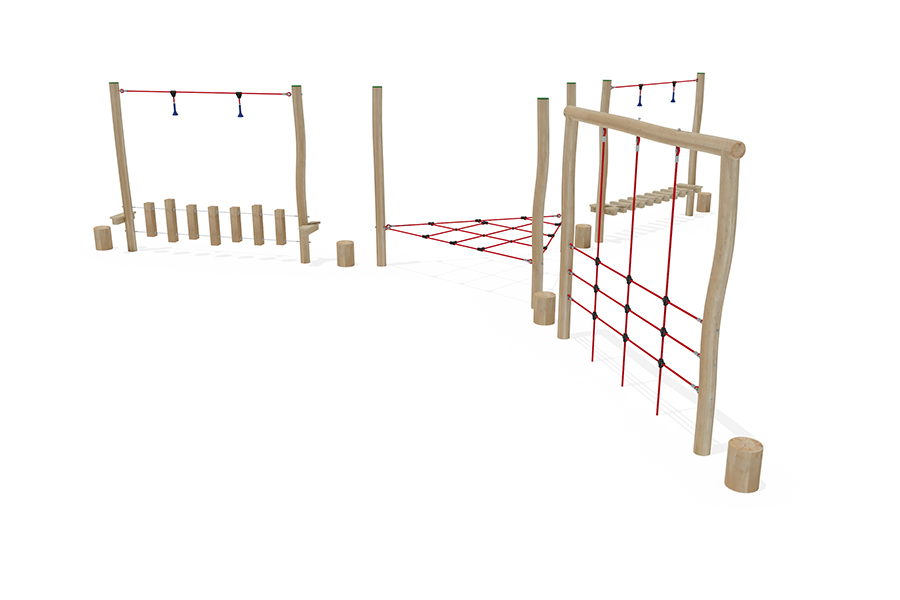 Kletternetze bestehen aus Herkulesseilen mit Stahldrahteinlagen mit feuerverzinkten Anschlüssen. Die Seile sind UV-beständig und mit PP-Leinen umwickelt. Die Seilverbindungen sind mit patentierten PP-Elementen hergestellt und vandalensicher.