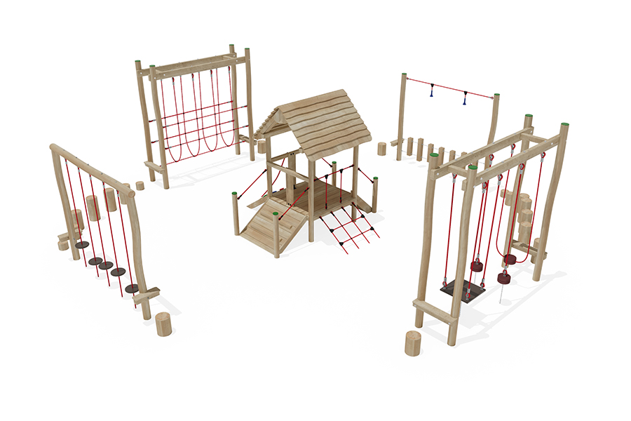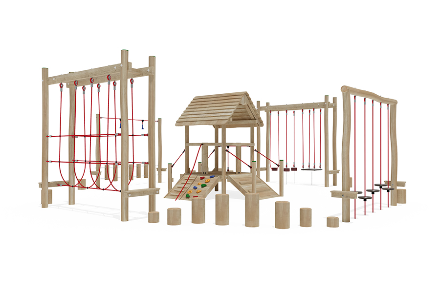 Kletternetze bestehen aus Herkulesseilen mit Stahldrahteinlagen mit feuerverzinkten Anschlüssen. Die Seile sind UV-beständig und mit PP-Leinen umwickelt. Die Seilverbindungen sind mit patentierten PP-Elementen hergestellt und vandalensicher.